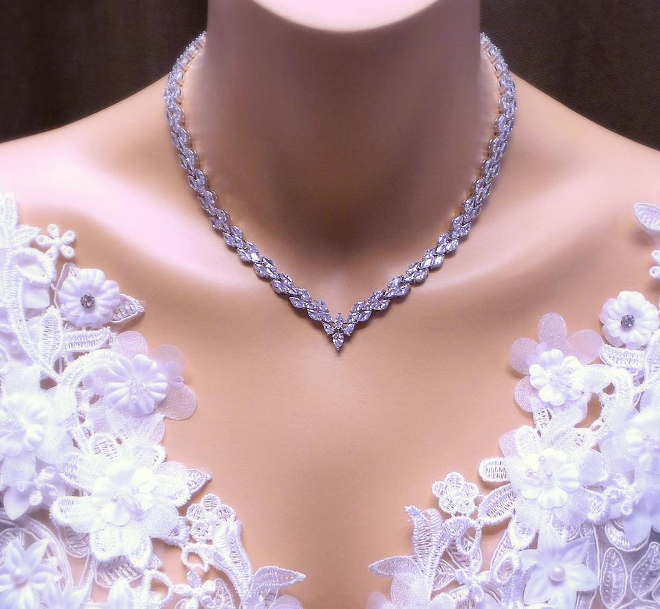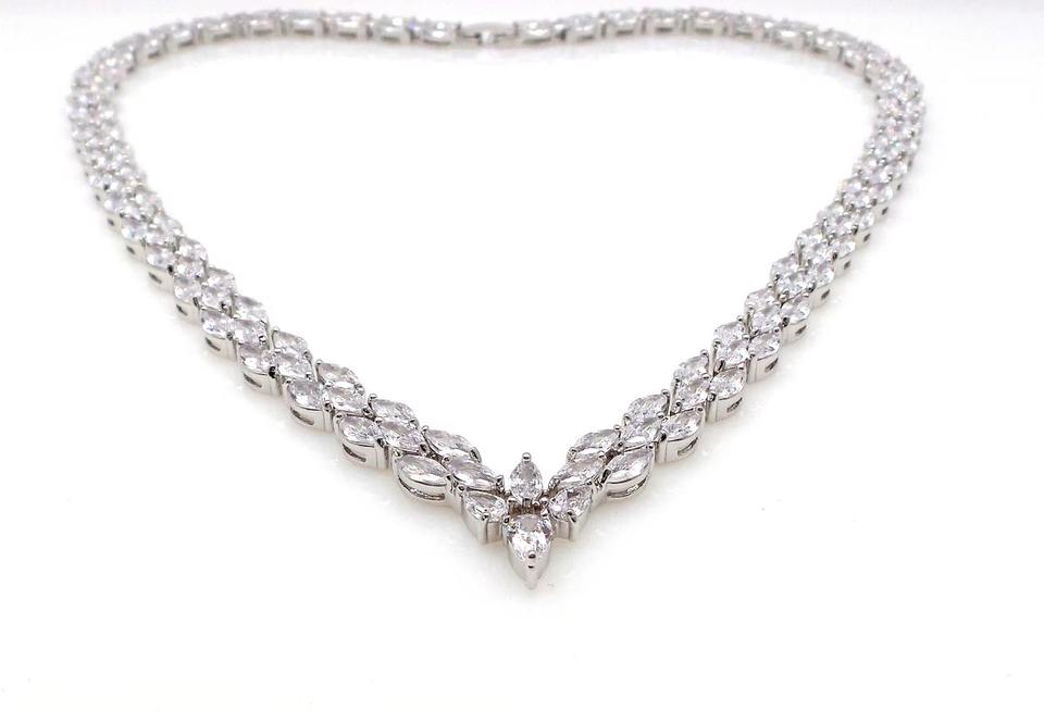 สร้อยคอเทนนิสงานแต่งงานสำหรับเจ้าสาวสร้อยคอสำหรับงานพรอมสร้อยคอประดับเพชรสังเคราะห์สีขาวหรูหราคอโรเดียมรูปตัววี