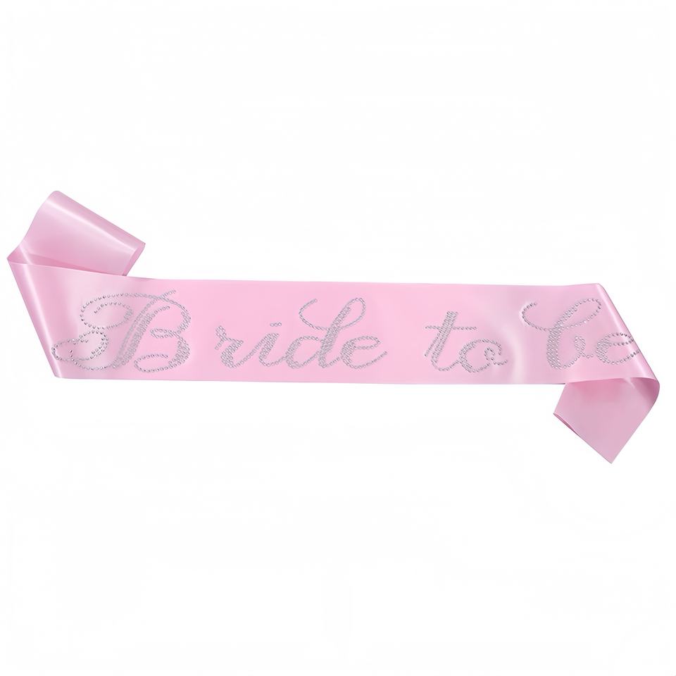 สายสะพายเจ้าสาวสีชมพูผ้าซาตินประดับเพชรงานปาร์ตี้สละโสด รุ่น SAH-429