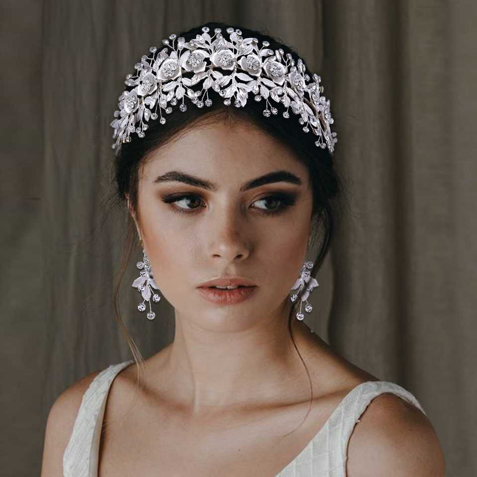 ที่คาดผม Bridella BHP349-S สีเงินประดับมุกและคริสตัลลายดอกไม้ สำหรับงานแต่งงาน งานพรอม และงานพิธีการต่างๆ - สวมใส่สบาย