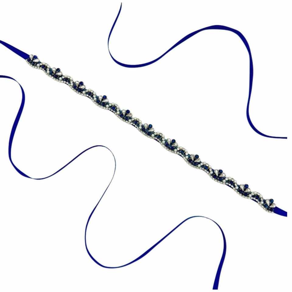 Bridella เข็มขัดพลอยเทียมกรมท่าและไข่มุกปรับระดับได้สำหรับงานแต่งงานงานพรอมและงานทางการสำหรับเจ้าสาว