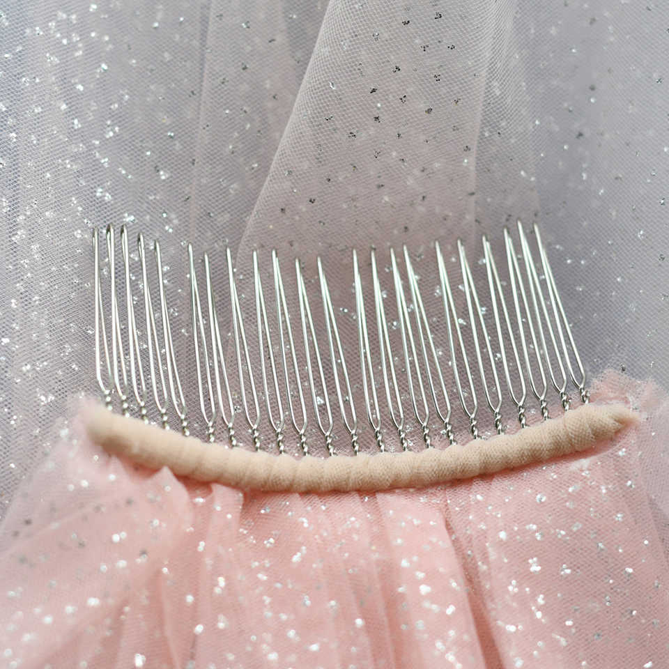 ผ้าคลุมเจ้าสาว Bridella M108 สีน้ำเงิน ผ้าตาข่ายและเลื่อม ผ้าทูลล์นุ่ม สวมใส่สบาย ผ้าคลุมเจ้าสาวแบบยาว 2 ชั้น ประดับลูกไม้ สำหรับงานแต่งงาน งานพรอม และงานพิธีการ