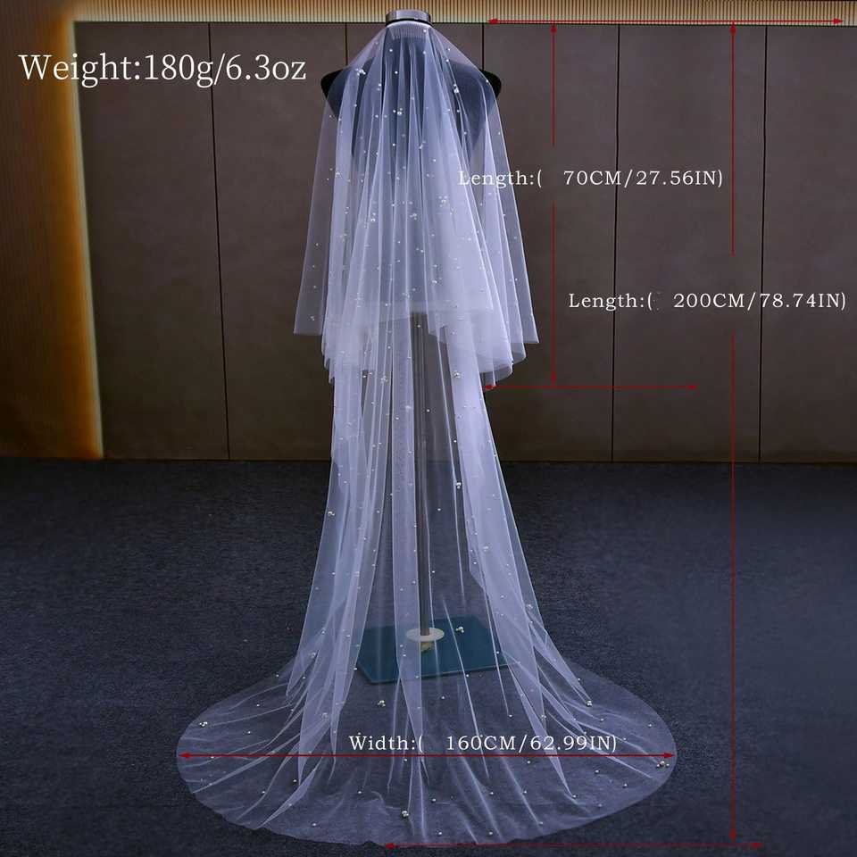 ผ้าคลุมหน้าเจ้าสาว Bridella BV186-WY2 สีไอวอรี่มุกและผ้าตาข่ายเนื้อนุ่มสองชั้น ประดับลูกปัดและลูกไม้ พร้อมหวีติดผม สำหรับงานปาร์ตี้/งานแต่งงาน