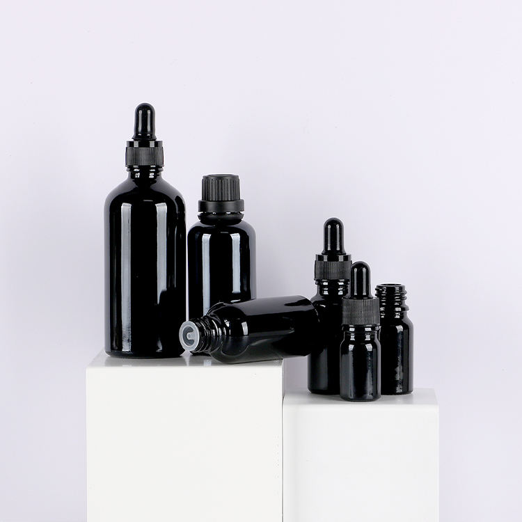 ขวดหยดน้ำมันหอมระเหยแก้วขนาด20มล. ขวดเซรั่มบำรุงรอบดวงตาสีดำสดใสขนาด50มล.