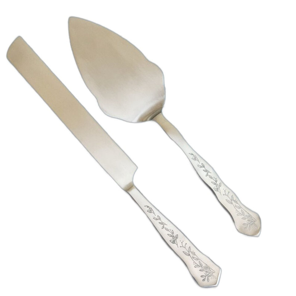 ชุดมีดตัดเค้กแต่งงานเคลือบเงาสีเงินทำจากสแตนเลสสีเงินสดใสและชุดไม้พายเซิร์ฟ