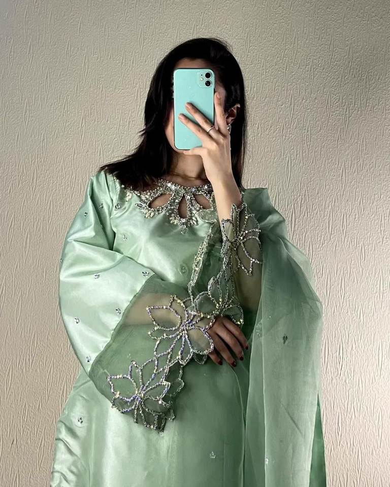 ชุดสلوارอินเดียแบบดั้งเดิมสำหรับผู้หญิง ผ้าขนสัตว์เทียมสีสันสดใส ทรงเข้ารูป ปักลายที่คอ ไซส์ S-M-L-XL-XXL ตัดเย็บสำเร็จ ผลิตที่เมืองสุรัต