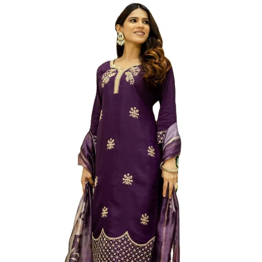 ชุดคุรติผ้าไหมสามชิ้น ดีไซน์ใหม่ สีสันสดใส ปักลายหนัก ลวดลายโดดเด่น ใส่สบายในฤดูร้อน เหมาะสำหรับงานปาร์ตี้ สำหรับผู้ใหญ่
