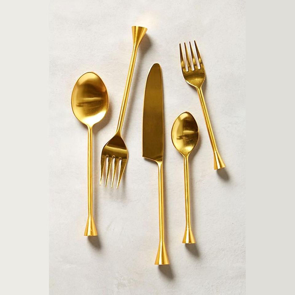 ชุดเครื่องใช้บนโต๊ะอาหารสีทองสดใสชุดเครื่องใช้ในครัวทำมือดีไซน์สวยงามทำจากรอยัล