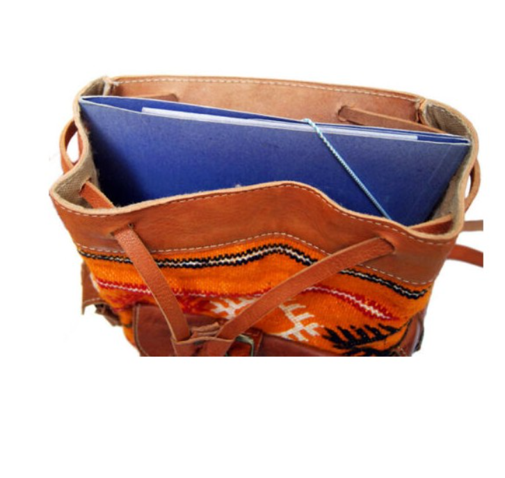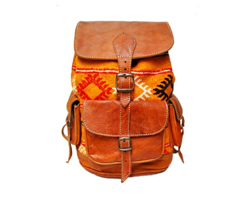 Mode:Bright Orange Boho Chic Kilim Moroccan Leather Backpack