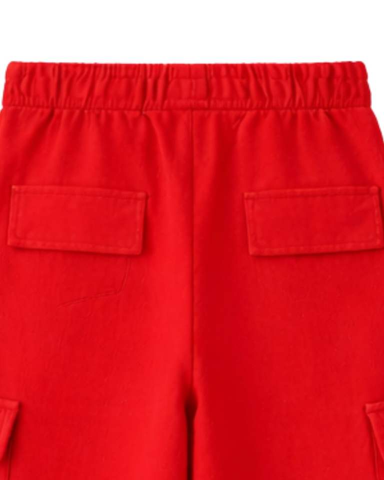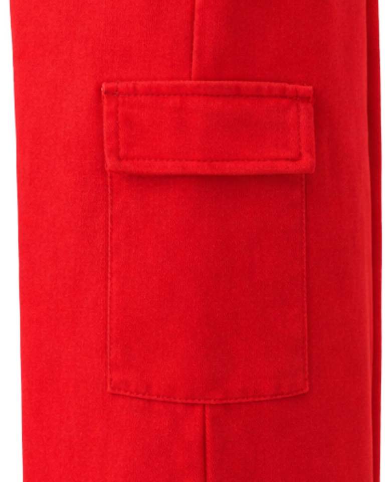 Bright Red Wide Leg Cargo Sweatpants Women Elastic Waist Casual Fleece Trousers Loose Fit Streetwear Comfortable Winter Pants