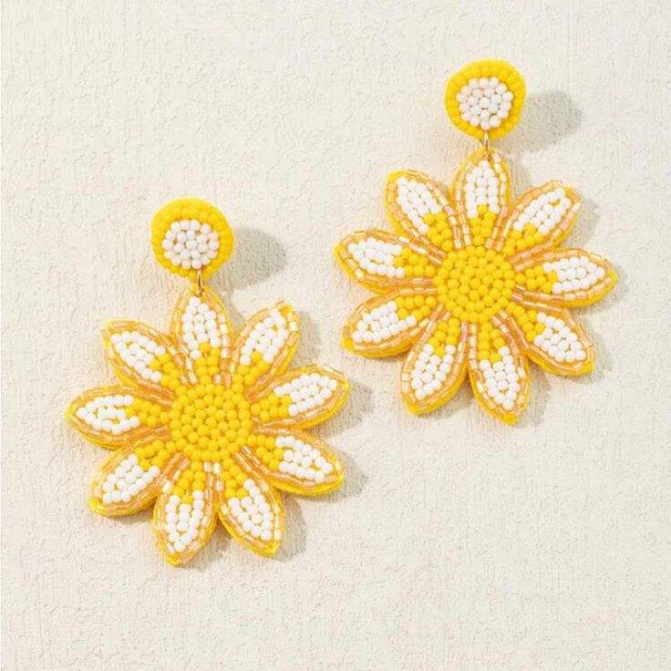 ต่างหูทรงสี่เหลี่ยมคู่สีเหลืองสดใส วัสดุลูกปัดทอ ดีไซน์สไตล์เรขาคณิต ผู้จัดจำหน่ายเครื่องประดับขายส่ง