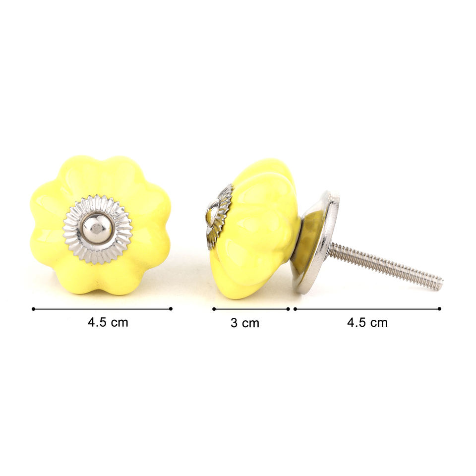 ลูกบิดเซรามิกรูปดอกไม้สีเหลืองสดใสลูกบิดตู้ลิ้นชักดึงสีเหลืองเซรามิกรูปดอกไม้ลูกบิดกลางพื้นผิวสีเงิน