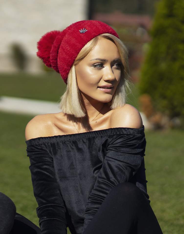 Brigida หมวกอัลพาก้าสีม่วงแดงโดย lavitta คุณภาพสูงเป็นมิตรต่อการเดินทางผ้าที่ให้ความอบอุ่นและน่ารื่นรมย์มีพู่ประดิษฐ์