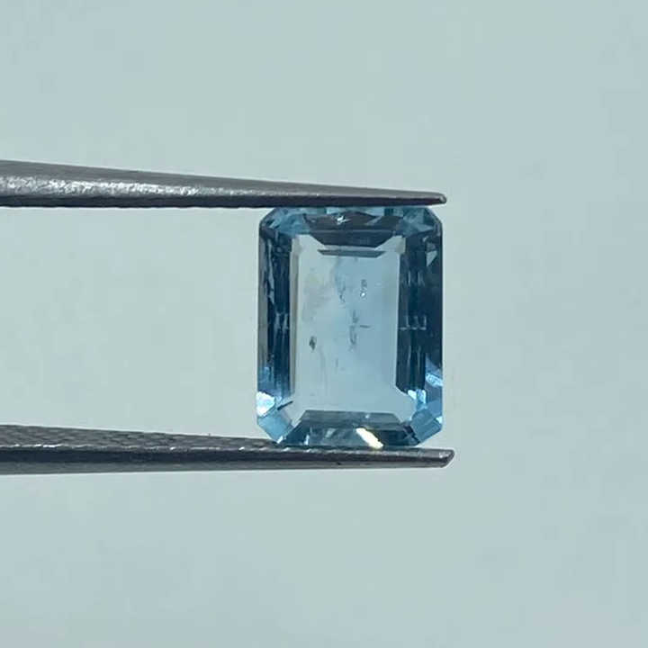 พลอยอะความารีนสีน้ำเงินธรรมชาติทรงบาแกตต์ 6x8 มม. 1.30 กะรัต คุณภาพสูง แบบเม็ดเดี่ยว