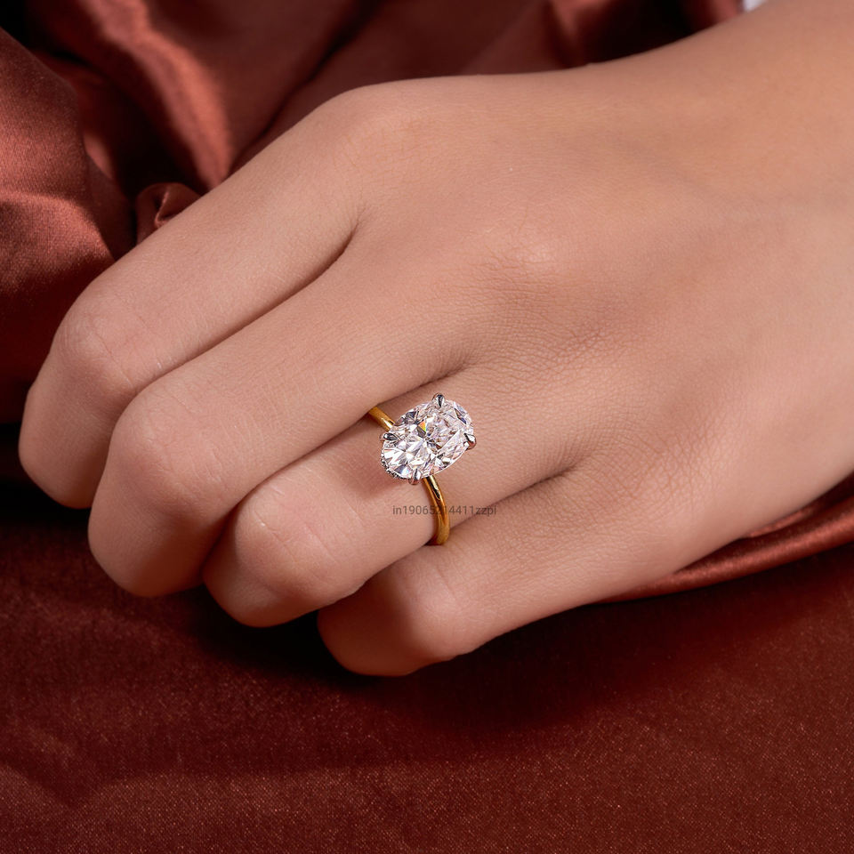 แหวนหมั้นเพชรรูปวงรีเพชรกะรัต4.70สุกใสตัดน้ำแข็งที่บดยาวและเป็นประกาย