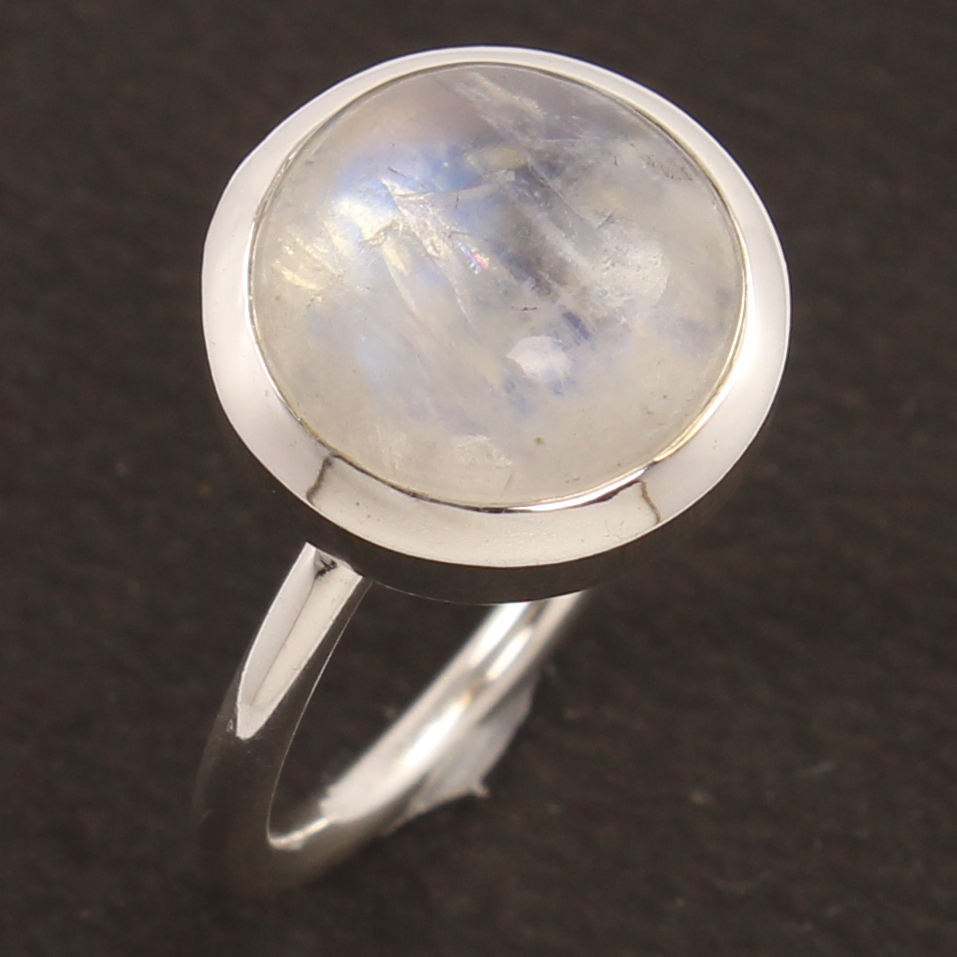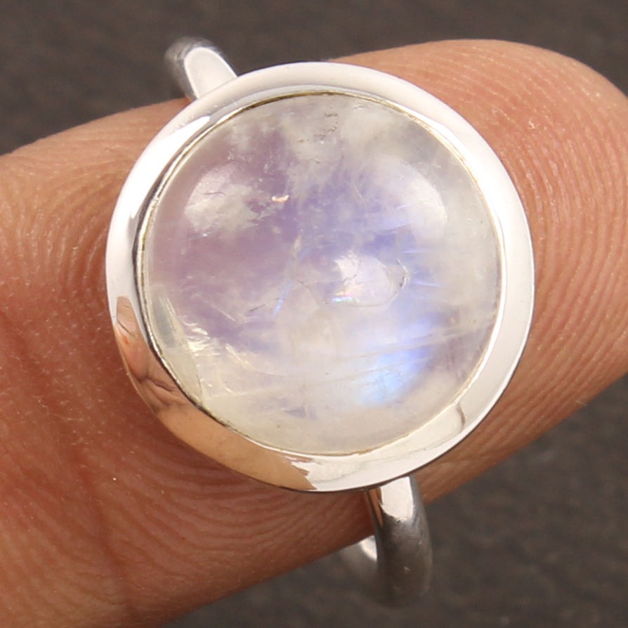 แหวนพลอยมูนสโตนสีรุ้งสุดสุกใส925สีเงินสเตอร์ลิงสีเงินแท้แหวนเครื่องประดับชั้นดีสไตล์โบฮีเมียน