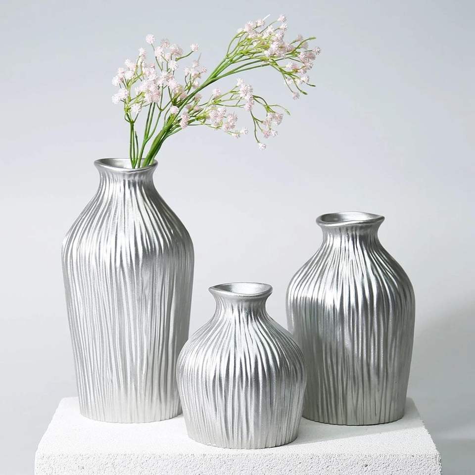แจกันดอกไม้โลหะสุดหรู เหมาะสำหรับการจัดดอกไม้แบบโดดเด่น ช่วยเพิ่มความเปล่งประกายให้กับห้องอย่างมีเสน่ห์