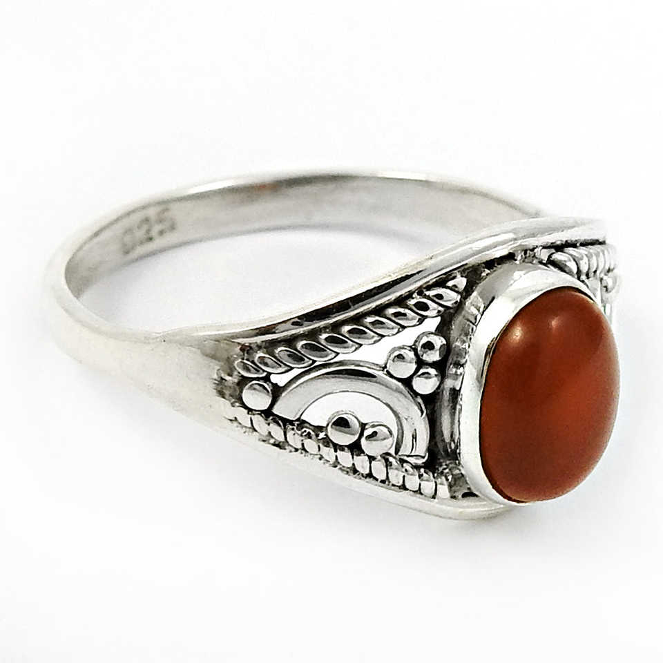 แหวนพลอยคาร์เนเลียนทรงรีเจียระไนสวยงาม แหวนเงินแท้ 925 ทำมือ ดีไซน์สวยสไตล์โบโฮ ราคาสมเหตุสมผล