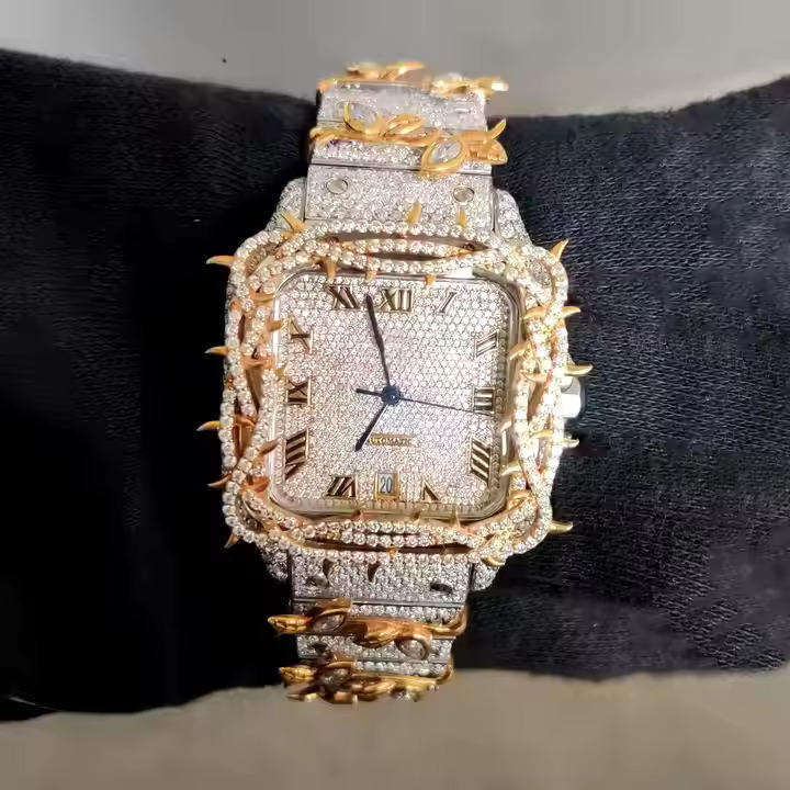 นาฬิกาควอตซ์ที่ยอดเยี่ยมพร้อมด้วยหินมอิสซาไนต์เย็นเพื่อความงามที่สดใสคุณภาพระดับพรีเมียมและแม่นยำ