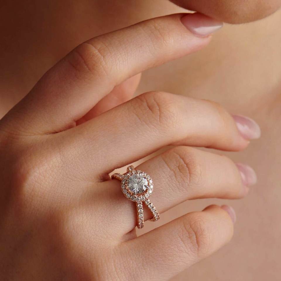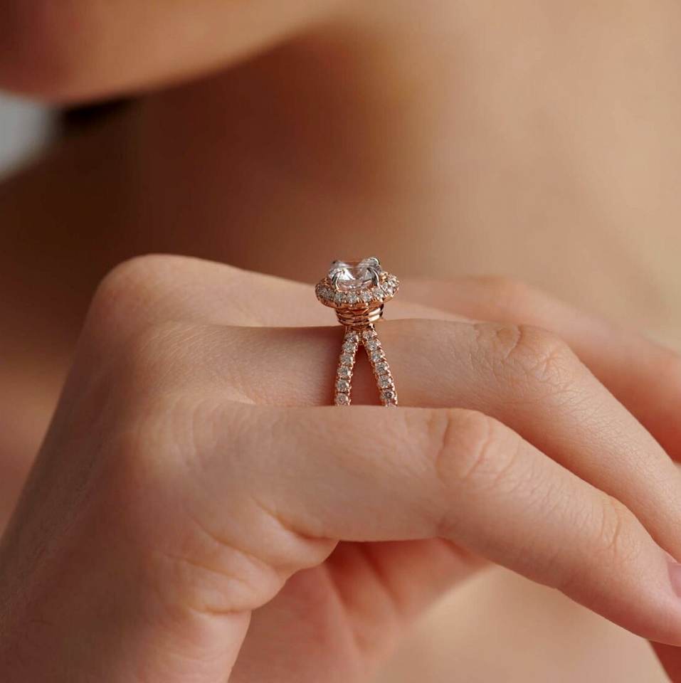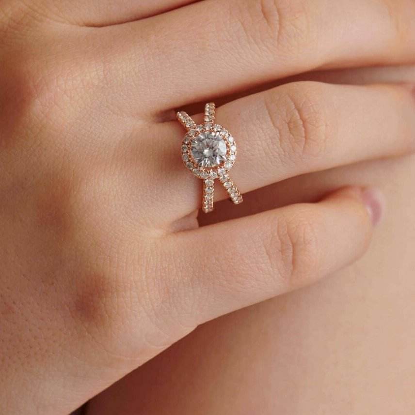 Halo-Split Shank Solitaire Engagement Ring