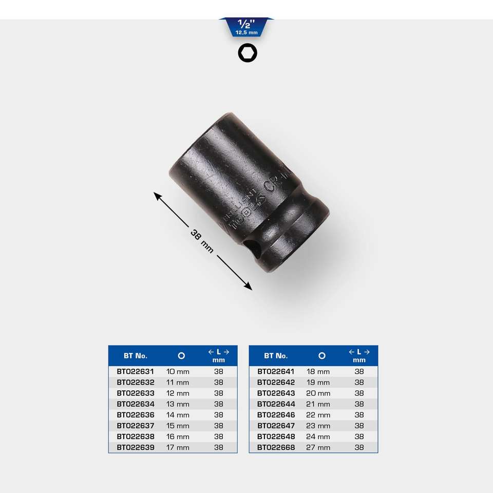 เครื่องมือที่ยอดเยี่ยม1/2 "ซ็อกเก็ตหกเหลี่ยมขนาด13มม. สั้น