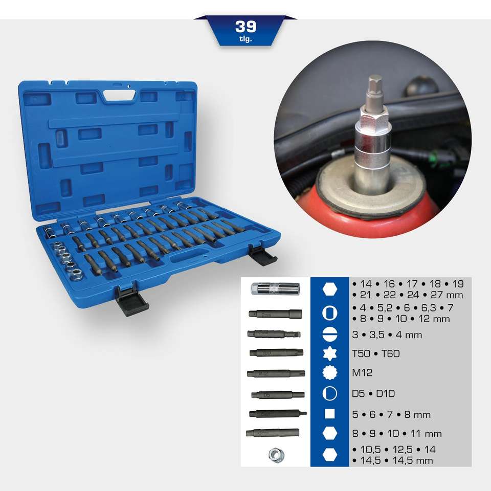 ชุดเครื่องมือสำหรับติดตั้งที่รับแรงกระแทก39ชิ้น