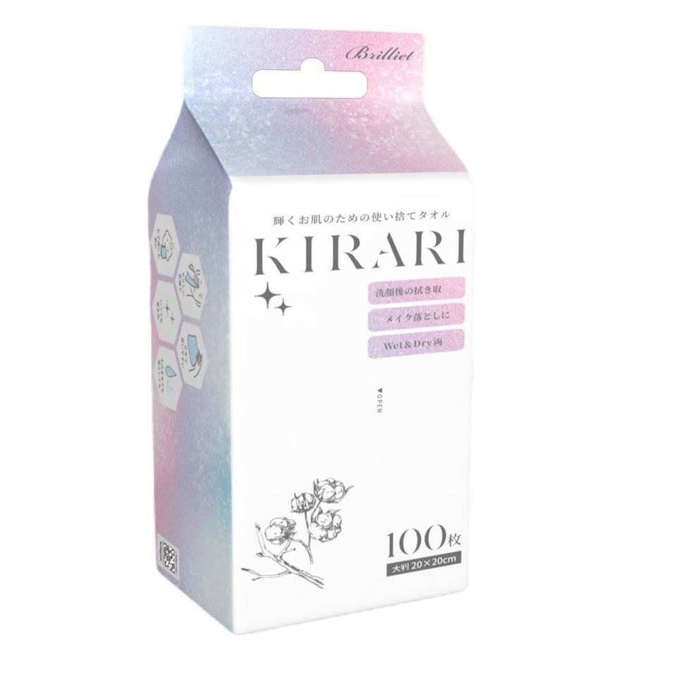 บริลเลียต คิราริ คลีนซิ่งทิชชู่ 20x20 ซม. ใช้ได้ทั้งแบบเปียกและแห้ง สำหรับเช็ดเครื่องสำอาง 100 แผ่น