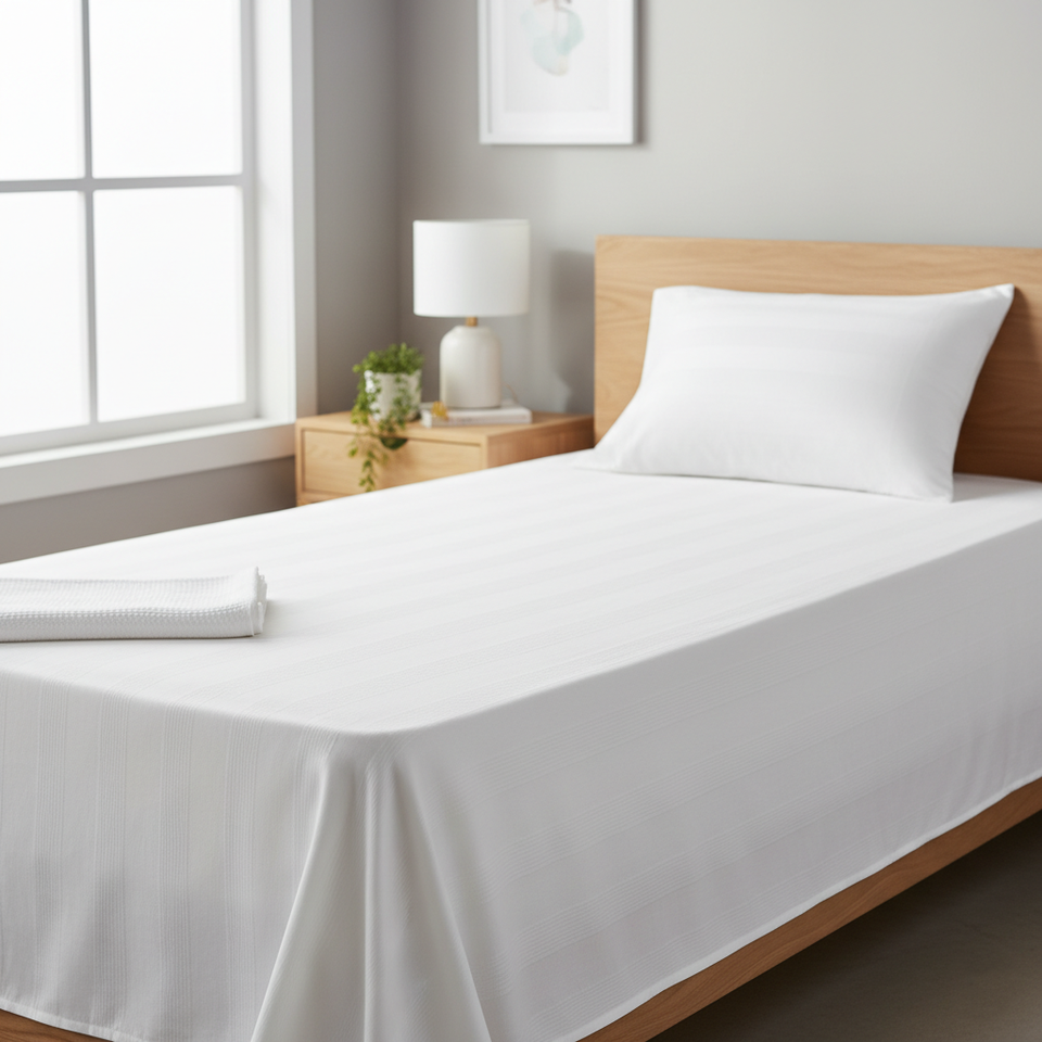 นำโรงแรม & โรงพยาบาลบ้านหรูพร้อมผ้าปูที่นอนลายทางทำจากผ้าซาตินเนื้อนุ่ม300TC ไรฝุ่นและความสดชื่นในชีวิตประจำวัน