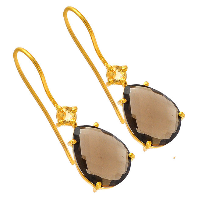 Briolette Pear ต่างหูควอทซ์สโมคกี้อัญมณี925เครื่องประดับเงินสเตอร์ลิงสีทองสายหูแบบห้อยทันสมัยสำหรับงานแต่งงานของผู้หญิง