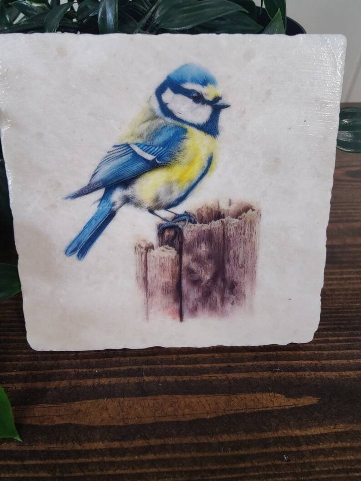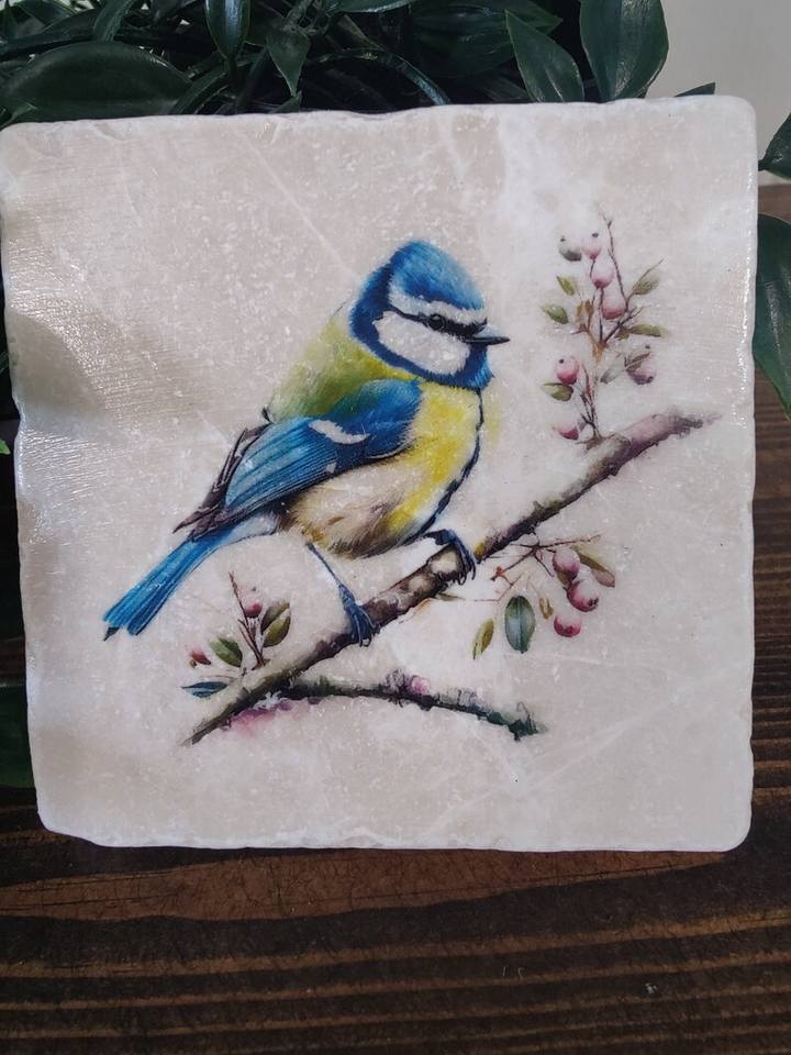 ที่รองแก้วหินอ่อนบลูทิตสไตล์อังกฤษ ของตกแต่งบ้านรูปนกสไตล์สวนชนบท