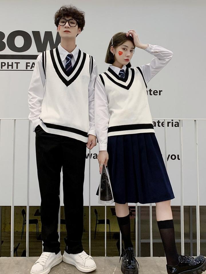 ชุดเครื่องแบบนักเรียนเสื้อเชิ้ตสีขาวสไตล์อังกฤษชุดนักเรียนมัธยมต้นชุดนักเรียนชุดร้องเพลงคอรัสชุดสำหรับช่วงจบการศึกษา