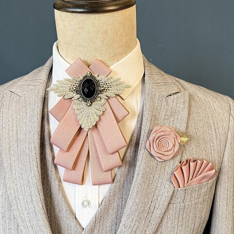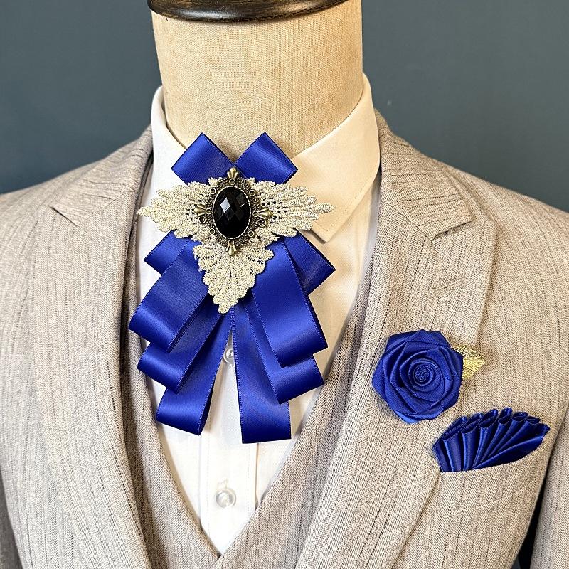 ชุดผ้าพันคอผูกโบว์ ผ้าเช็ดหน้า และผ้าพันคอสี่เหลี่ยมสำหรับผู้ชายสไตล์อังกฤษ เหมาะสำหรับงานแต่งงาน การแสดง งานเลี้ยงเจ้าบ่าว พร้อมดอกไม้ประดับปกเสื้อและเนคไท อุปกรณ์เสริมสำหรับผู้ชาย