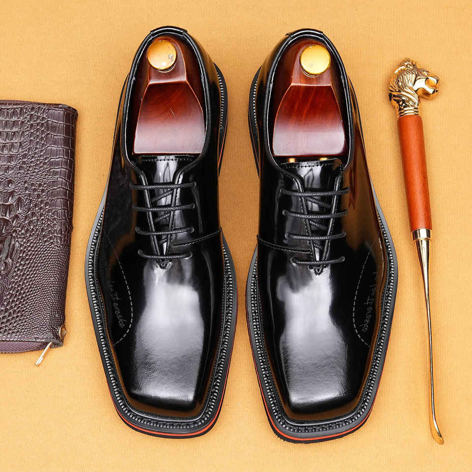 รองเท้าหนังแท้กันน้ำสไตล์อ็อกซ์ฟอร์ดสำหรับผู้ชายสไตล์อังกฤษ ทำมือ เหมาะสำหรับงานแต่งงาน ธุรกิจ งานทางการ และสวมใส่ลำลอง พร้อมสายรัดแบบหัวเข็มขัดกันลื่น
