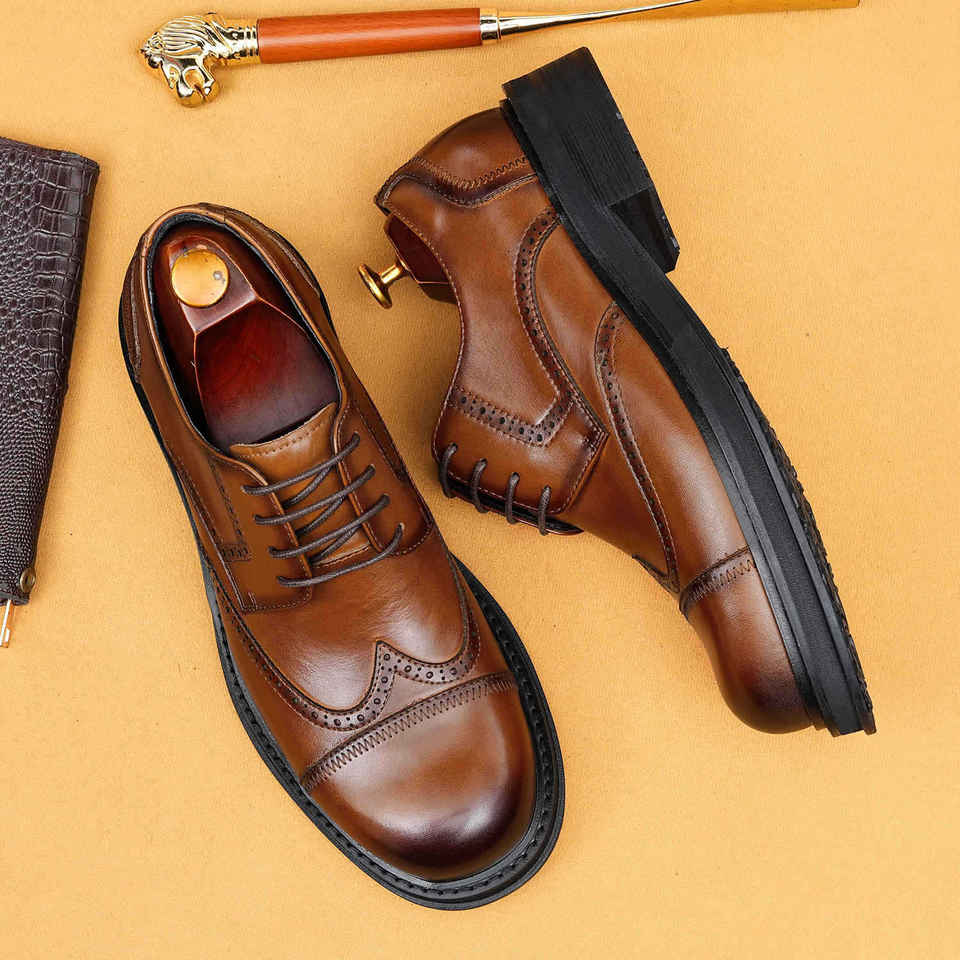 รองเท้าหนังแท้กันน้ำสไตล์อ็อกซ์ฟอร์ดสำหรับผู้ชายสไตล์อังกฤษ ทำมือ เหมาะสำหรับงานแต่งงาน ธุรกิจ งานทางการ และสวมใส่ลำลอง พร้อมสายรัดแบบหัวเข็มขัดกันลื่น