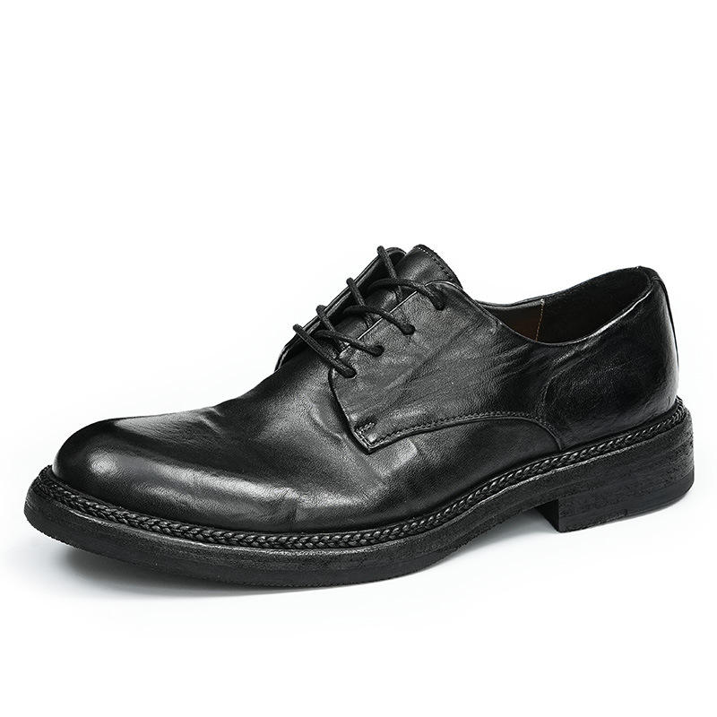 รองเท้าหนังแท้ผู้ชายสไตล์อังกฤษ กันน้ำ ปิดนิ้วเท้า แบบอ็อกซ์ฟอร์ด ทำมือ สำหรับงานแต่งงาน ธุรกิจ ลำลอง กันลื่น พร้อมสายรัดหัวเข็มขัด