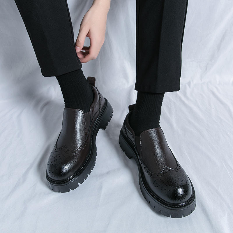 รองเท้าหนังแท้ผู้ชายสไตล์อังกฤษ กันน้ำ ปิดนิ้วเท้า แบบอ็อกซ์ฟอร์ด ทำมือ สำหรับงานแต่งงาน ธุรกิจ ลำลอง กันลื่น พร้อมสายรัดหัวเข็มขัด