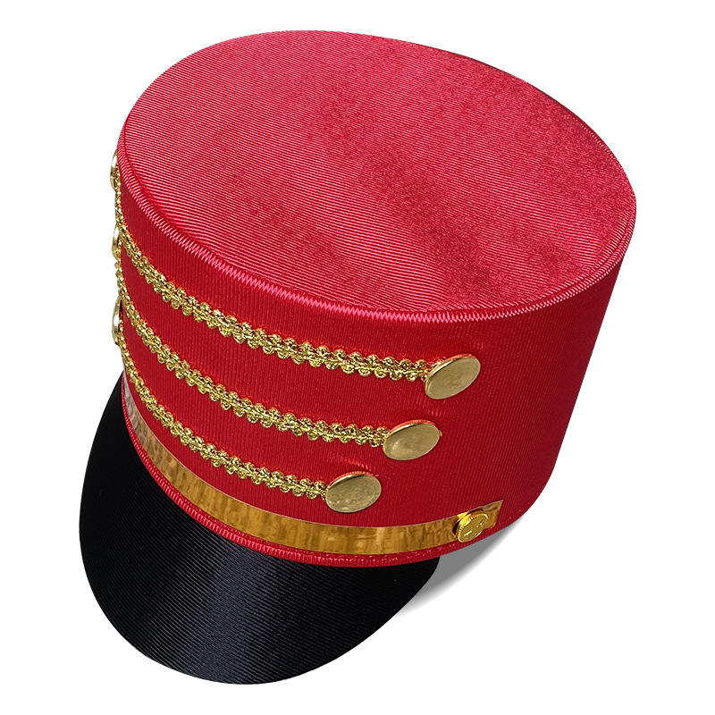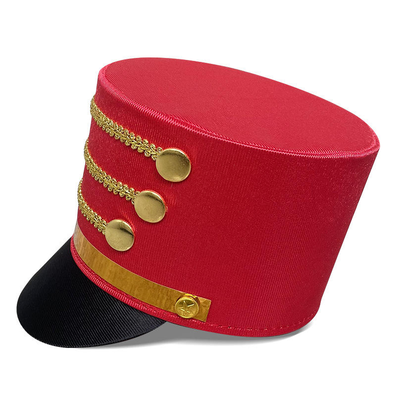 หมวกทรงสูงสีแดงสไตล์อังกฤษสำหรับผู้ชายหมวกทหารสำหรับออกกำลังทหารสำหรับงานปาร์ตี้สไตล์ยุโรปอเมริกัน