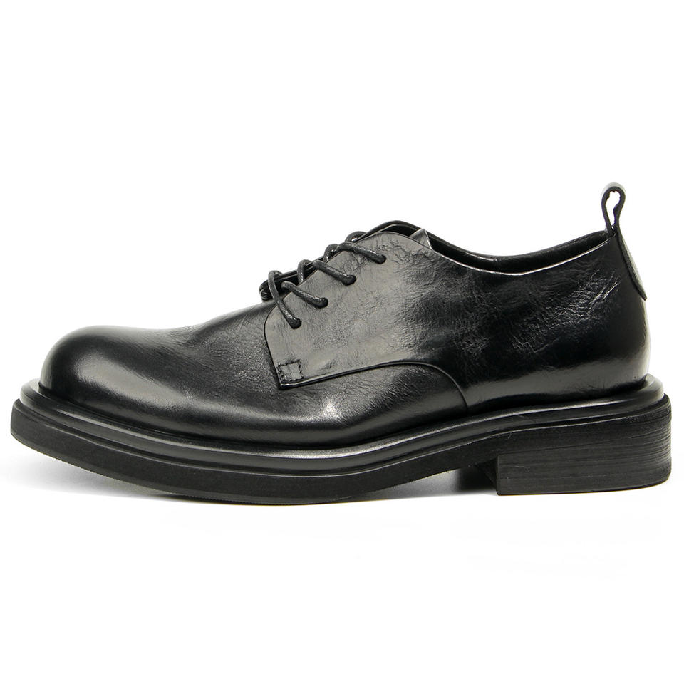 รองเท้าผู้ชายสไตล์เรโทรอังกฤษ ทำมือ ทรงเหลี่ยม ผูกเชือก ตกแต่งแบบ Patchwork เหมาะสำหรับใส่ทำงาน ปาร์ตี้ หนังแท้สีน้ำตาล น้ำหนักเบา