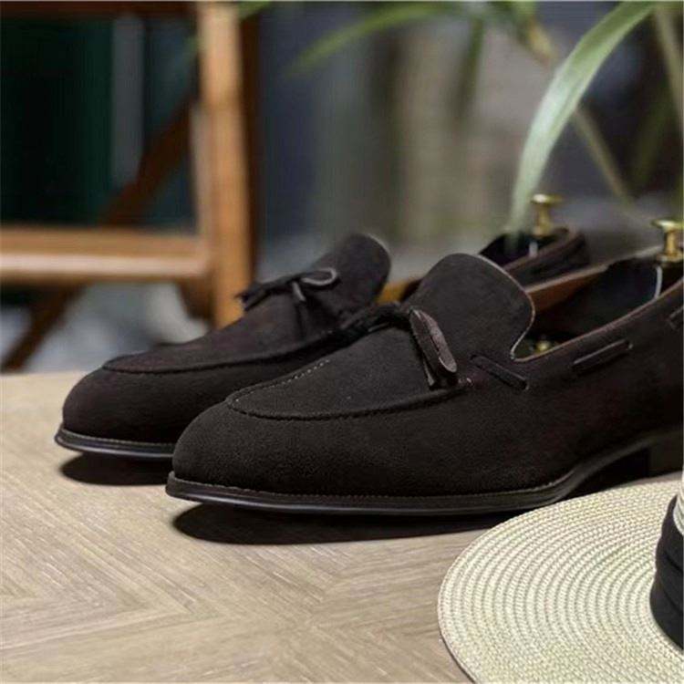 รองเท้าโลฟเฟอร์ทรงเหลี่ยมแบบผูกเชือกสำหรับผู้ชายสไตล์เรโทรอังกฤษ VALENTINA หนังแท้ พื้นยาง น้ำหนักเบา ระบายอากาศได้ดี กันลื่น