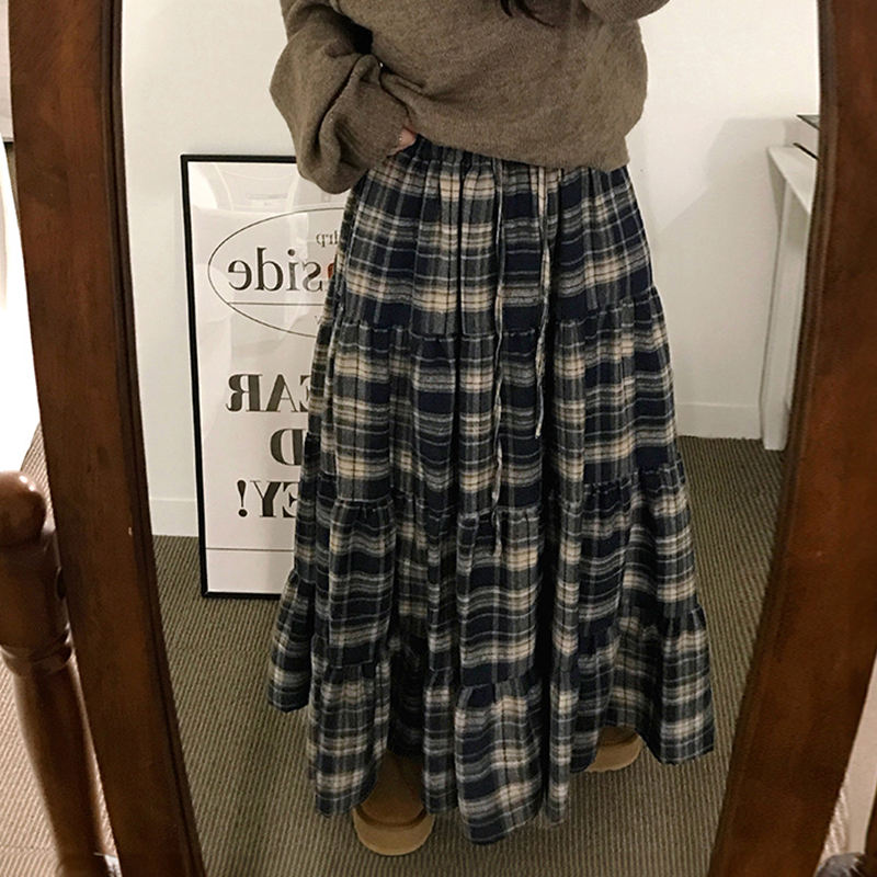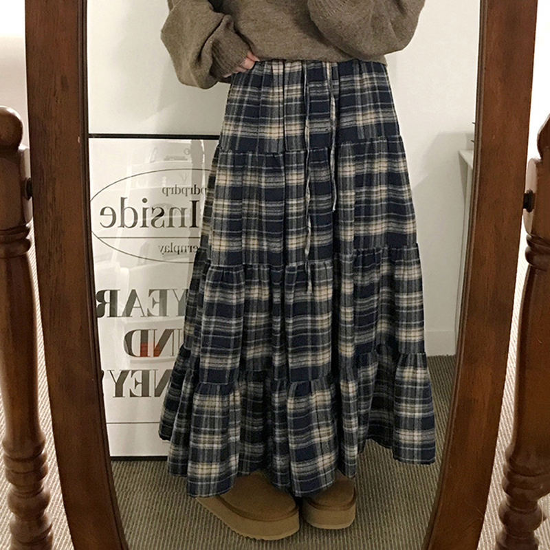 กระโปรงแม็กซี่ทรงเอไลน์สไตล์เรโทรอังกฤษ แต่งผ้าปะต่อหลายชั้น เอวสูง ดีไซน์หวานเก๋ แฟชั่นลำลองสไตล์วินเทจสำหรับผู้หญิง