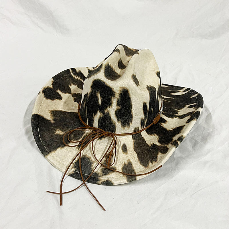 หมวกคาวบอยสไตล์ตะวันตกสไตล์อังกฤษย้อนยุคหมวกสำหรับผู้ชายหมวกคาวบอยปีกกว้างลายวัวฝ้าสไตล์ย้อนยุค