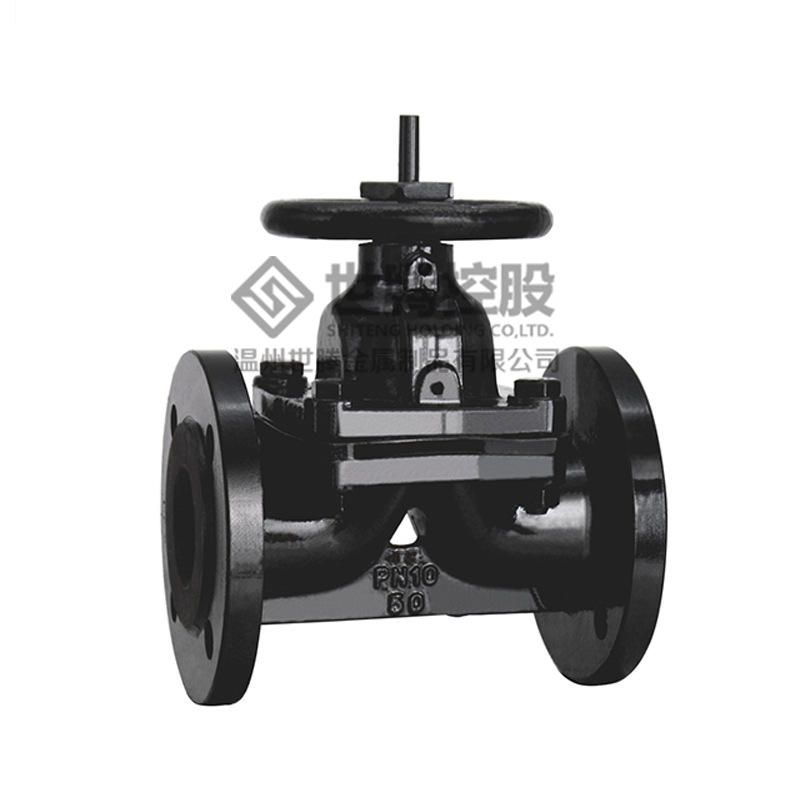 วาล์วไดอะแฟรมแบบมีหน้าแปลน ผลิตจากเหล็กหล่อ มาตรฐานอังกฤษ EG41J-16C บุยาง สำหรับวาล์วแบบ Weir ทนการกัดกร่อน
