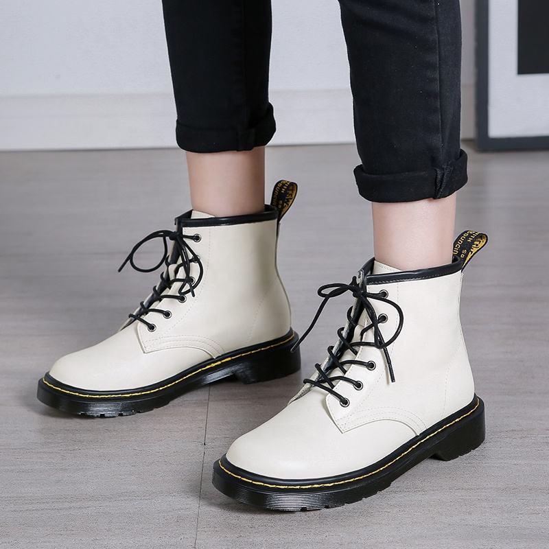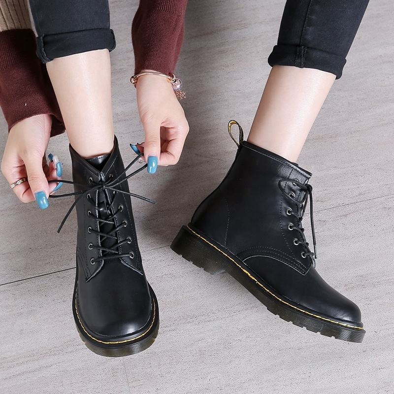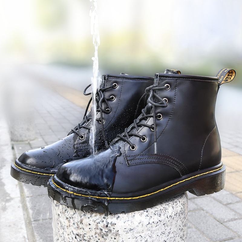 หนังวัวสไตล์อังกฤษสำหรับรองเท้าบูท สวมใส่สบาย กันน้ำ ระบายอากาศได้ดี แบบผูกเชือก ส้นหนา หัวมน สำหรับฤดูใบไม้ร่วงและฤดูหนาว