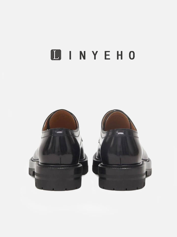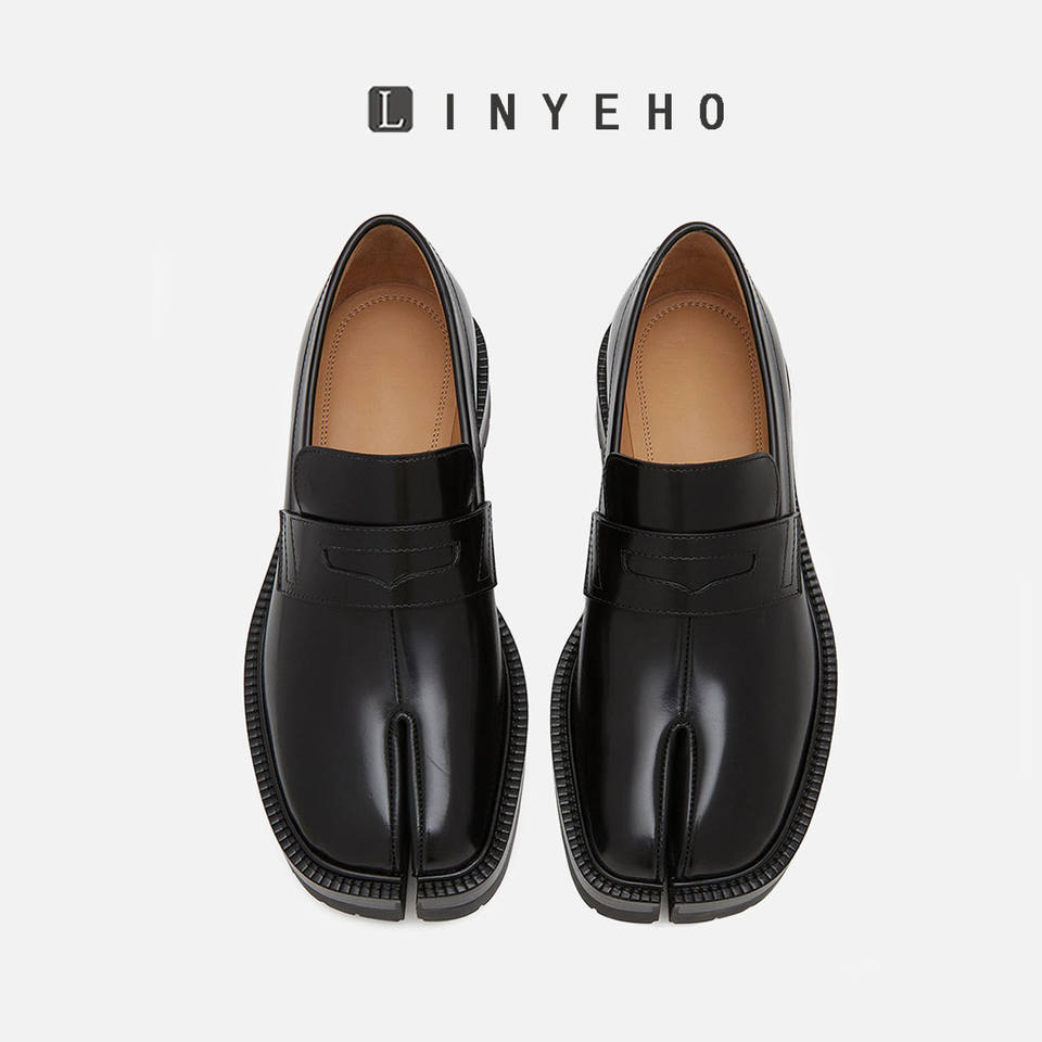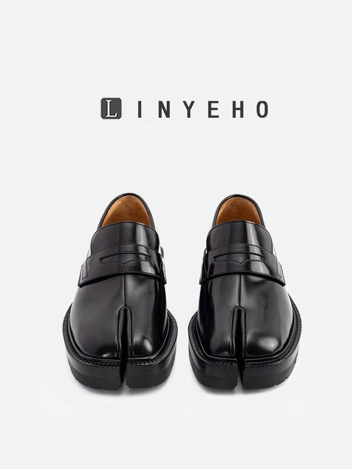 รองเท้าหนังแท้สไตล์อังกฤษแบบลำลอง พื้นหนา สำหรับผู้ชายและผู้หญิง รุ่น Tadi Split-Toe และ Lazy Pig's Trotters Loafers
