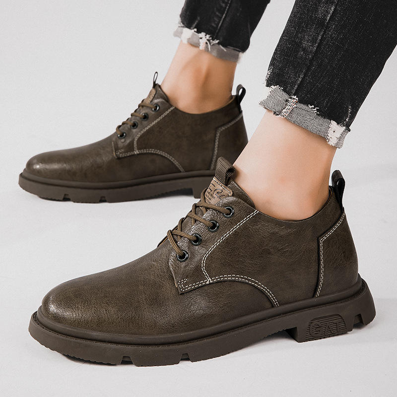 รองเท้าลำลองสไตล์อังกฤษสำหรับผู้ชาย รุ่นเรโทร ใส่ได้ทุกฤดู ฤดูใบไม้ผลิ ฤดูร้อน หนังแท้ หุ้มส้นต่ำ เพิ่มความสูง 8 ซม. แบบซ่อน