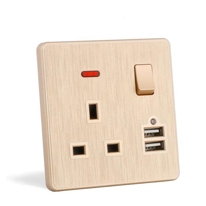 สวิตช์ไฟชาร์จติดผนังพร้อมผนัง UK:ทองแดง
