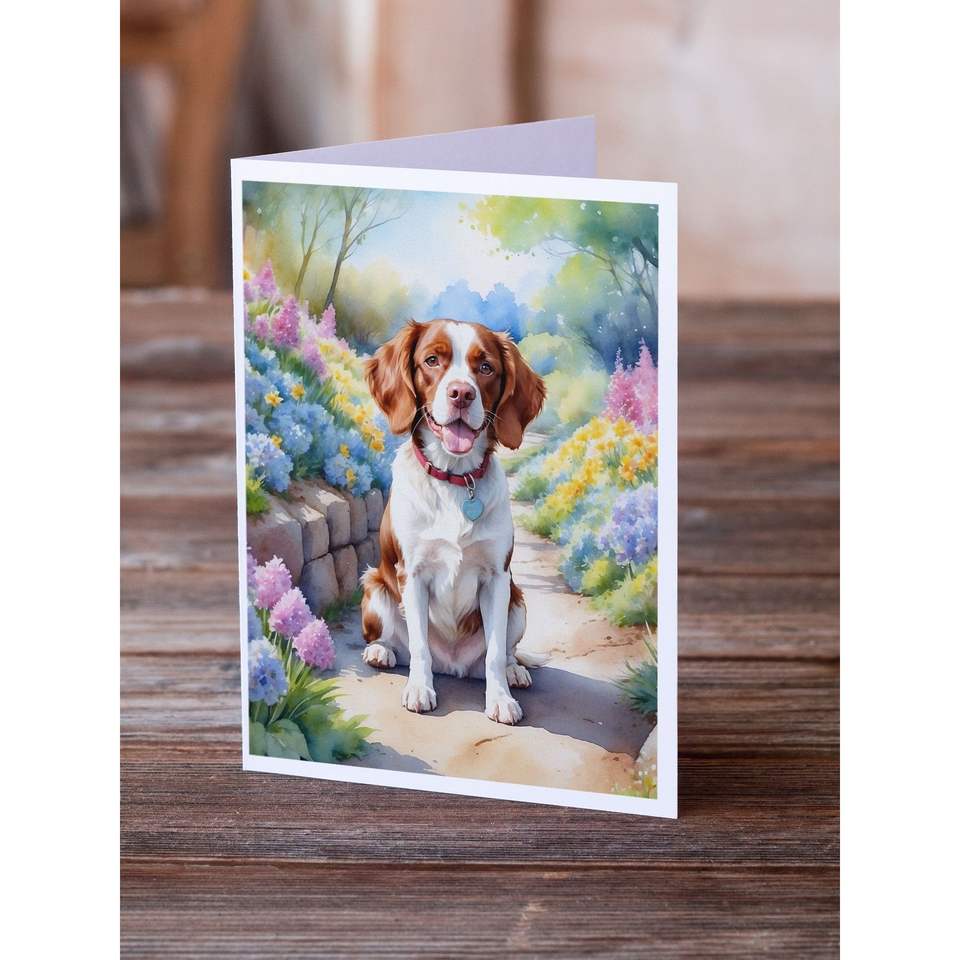บริตตานีสแปเนียลขนาด A7 5x7โน๊ตการ์ดเปล่าแพ็คการ์ดอวยพร8เส้นทางฤดูใบไม้ผลิพร้อมซอง