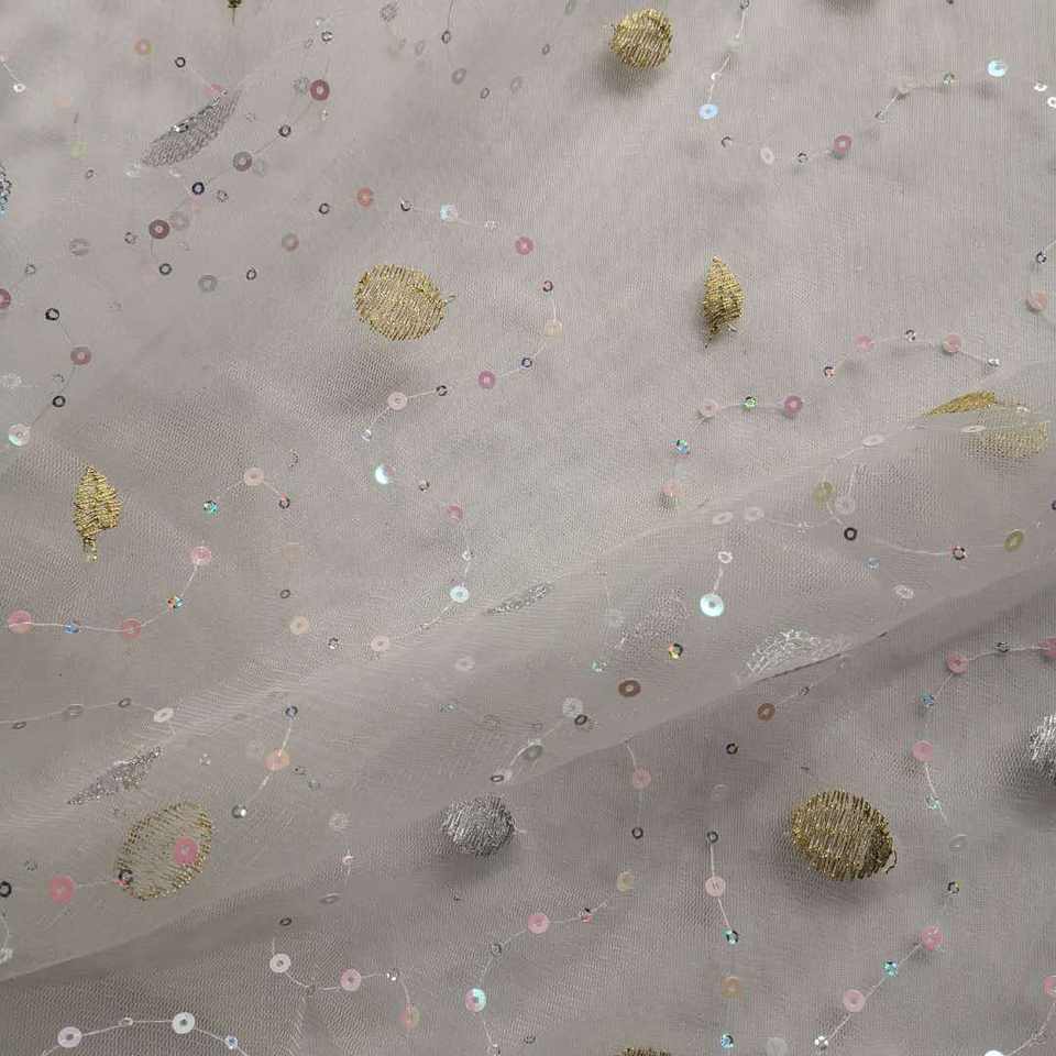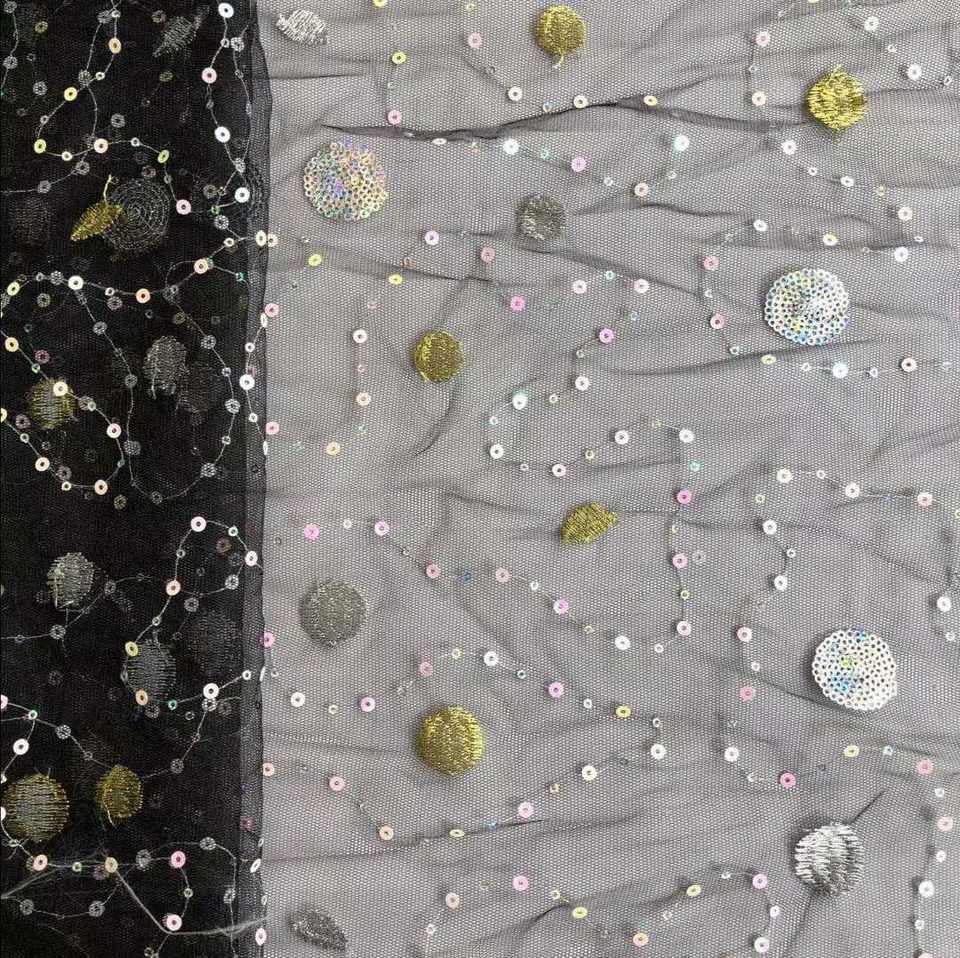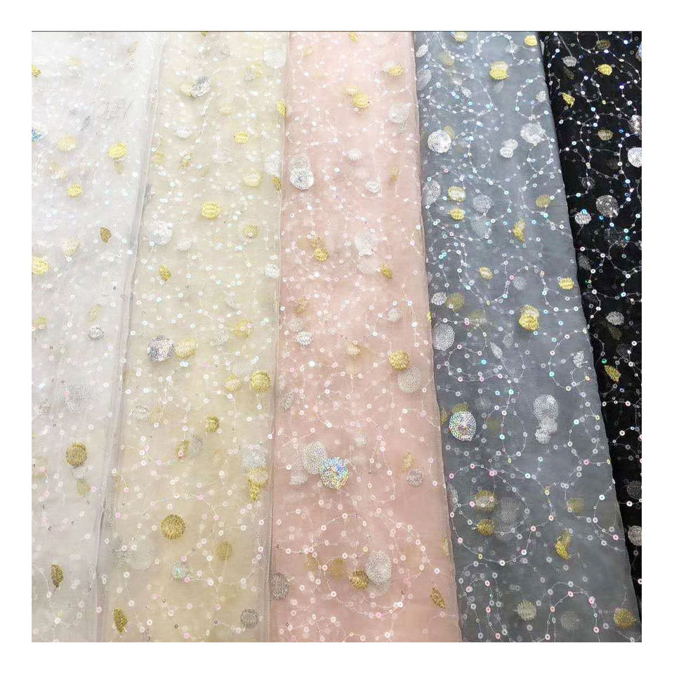 ผ้าลูกไม้ตาข่ายปักเลื่อมลายจุดใหญ่เล็ก ดีไซน์คลื่น ผ้าทอเรียบแบบถัก สำหรับงานตกแต่งบ้าน