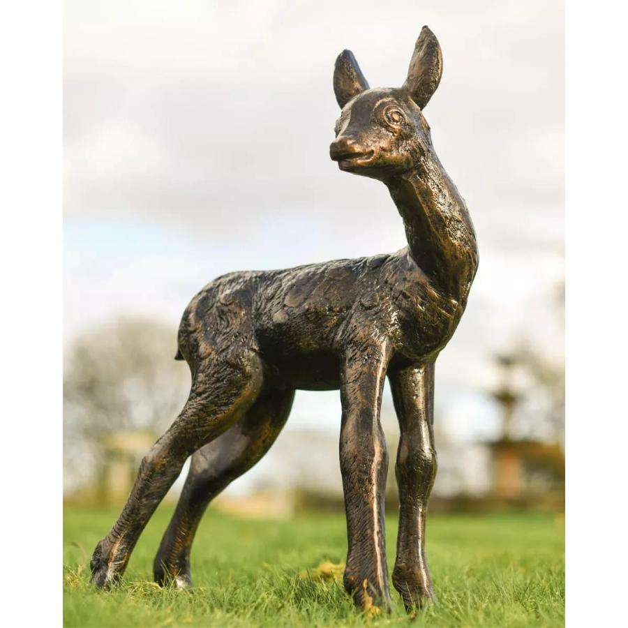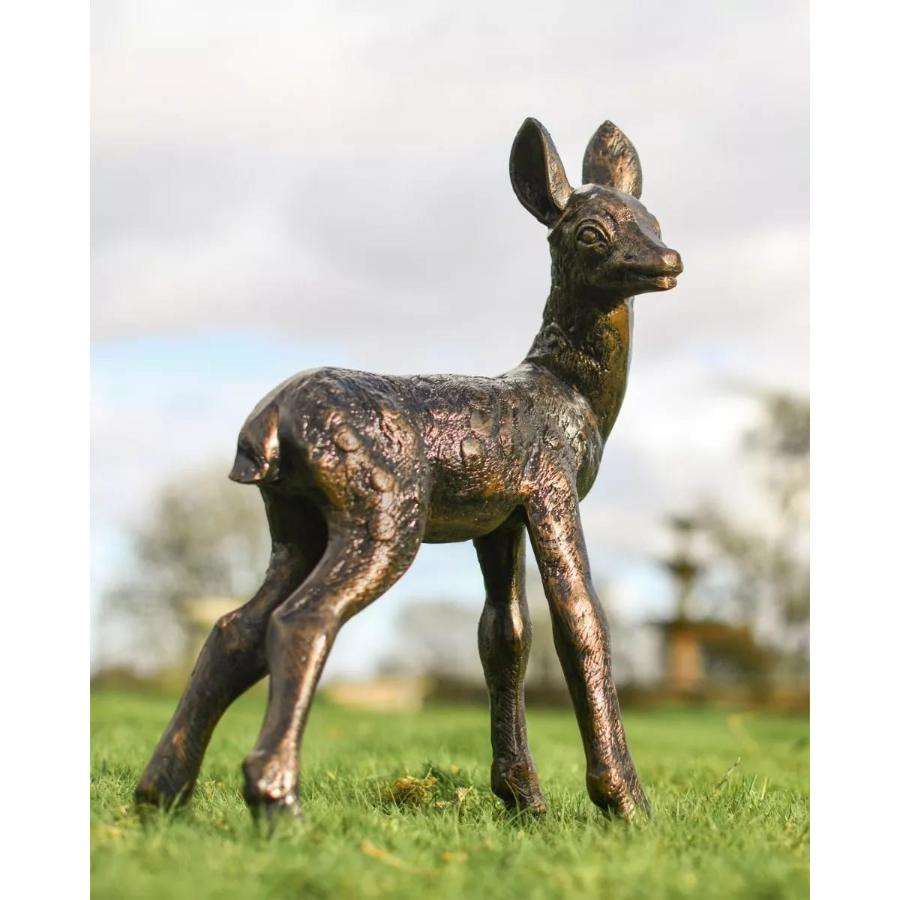 งานฝีมือโลหะรูปกวางสีบรอนซ์ ของตกแต่งสวน รูปกวางน้อยขนาดเล็ก งานแกะสลักทำมือ