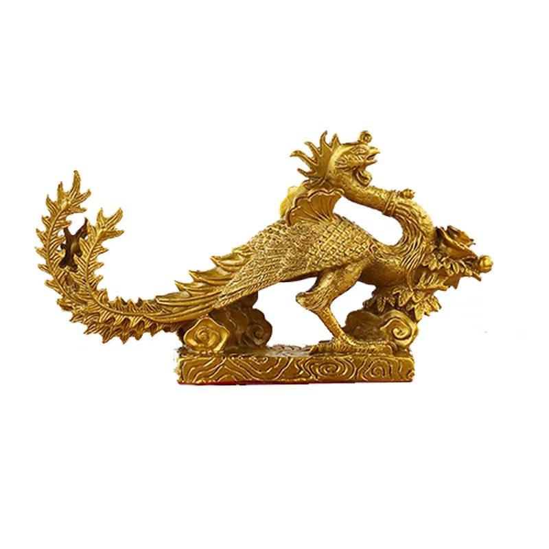 รูปปั้นมังกรทองสัมฤทธิ์รูปฟีนิกซ์ศิลปะบนโต๊ะอาหารทำจากทองแดงอุปกรณ์ตกแต่งบ้านทำจากโลหะ