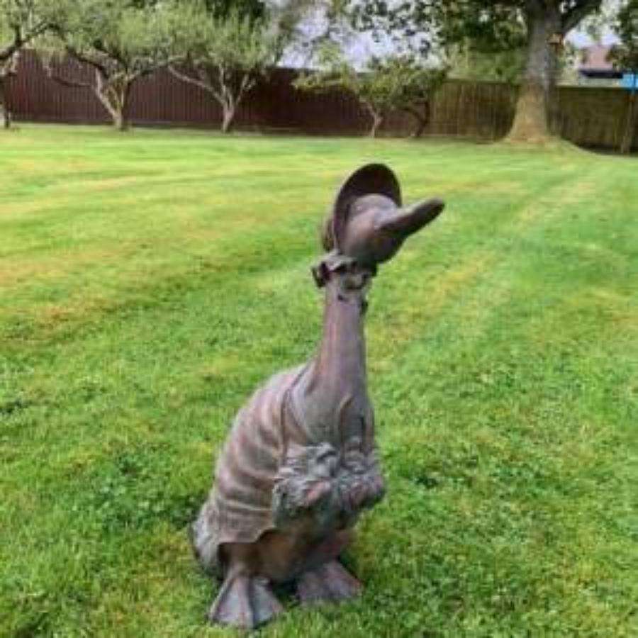 เป็ดสีบรอนซ์พร้อมหมวก รูปปั้นตกแต่งสวนสไตล์บ้านไร่